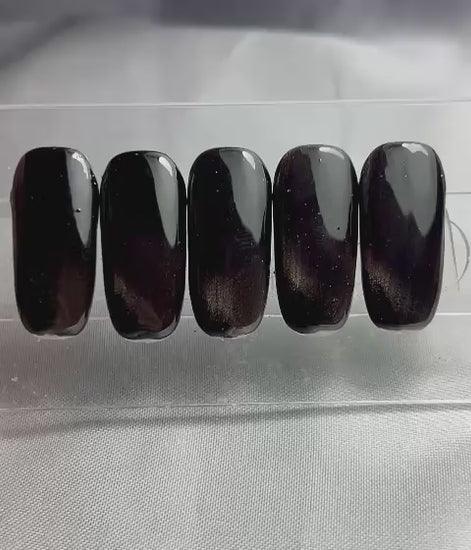 - Magnetisch Effect: Breng een tweede laag aan, houd een magneet boven de nagel voor 2-5 seconden om het cat-eye effect te activeren. Hard uit.