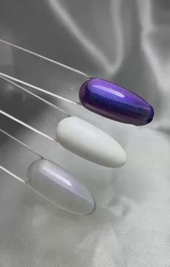 Blue violet is een intens kosmische paars/blauwtint met fijne magenta- en blauwe glitterdeeltjes die oplichten als sterrenstof. Deze gelpolish heeft een semi-transparante basis die volledig transformeert afhankelijk van de ondergrond: