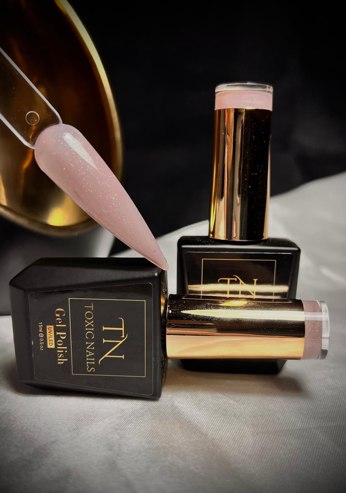 Soft Starlight, een betoverende gelpolish in een zachte, parelachtige tint met subtiele zilveren glinsteringen. Deze kleur straalt tijdloze elegantie uit en is perfect voor een verfijnde look.